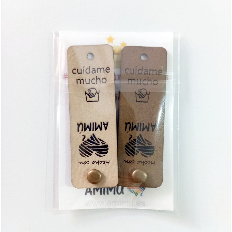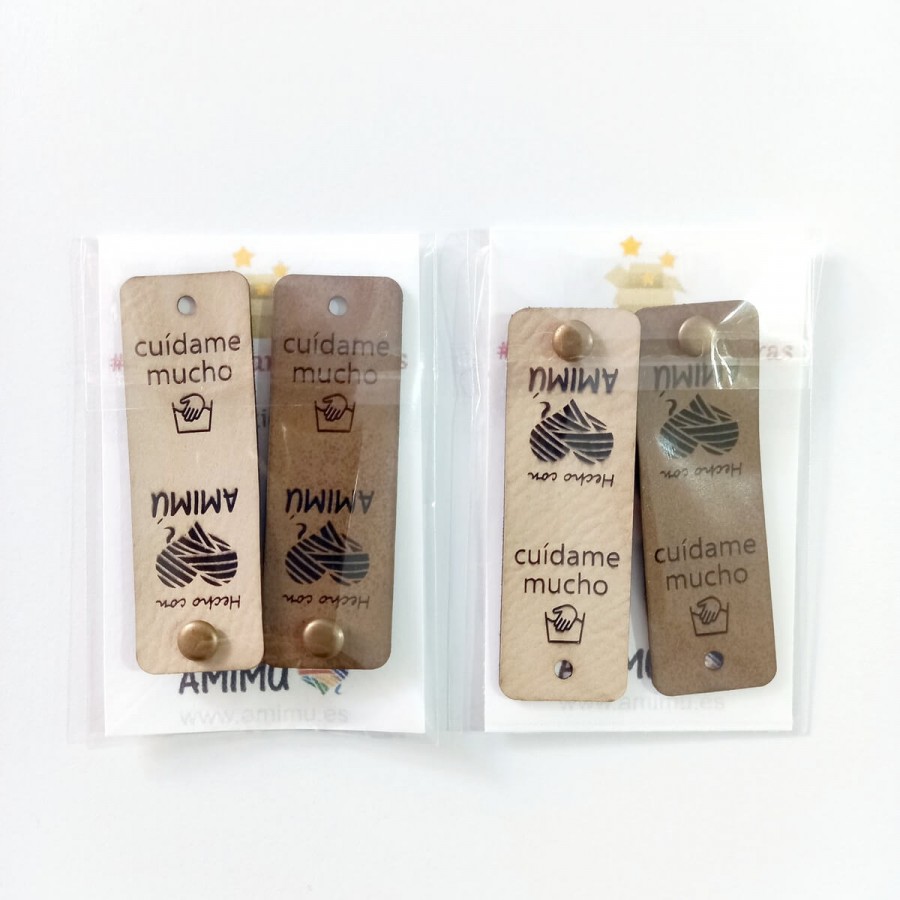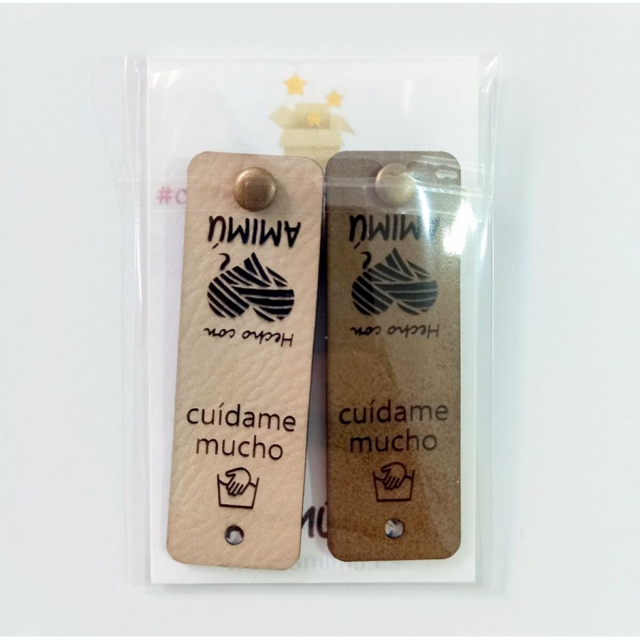 Etiquetas para marcar tus prendas tejidas con el mensaje "cuídame mucho" y que nadie olvide su valor.
