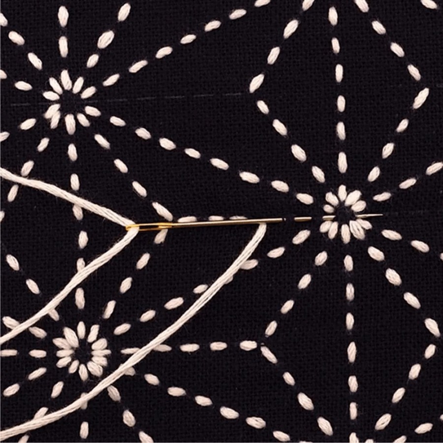 Estas agujas de bordar con punta afilada de Clover son ideales para el tradicional Sashiko japonés, un tipo de bordado con puntadas continuas.