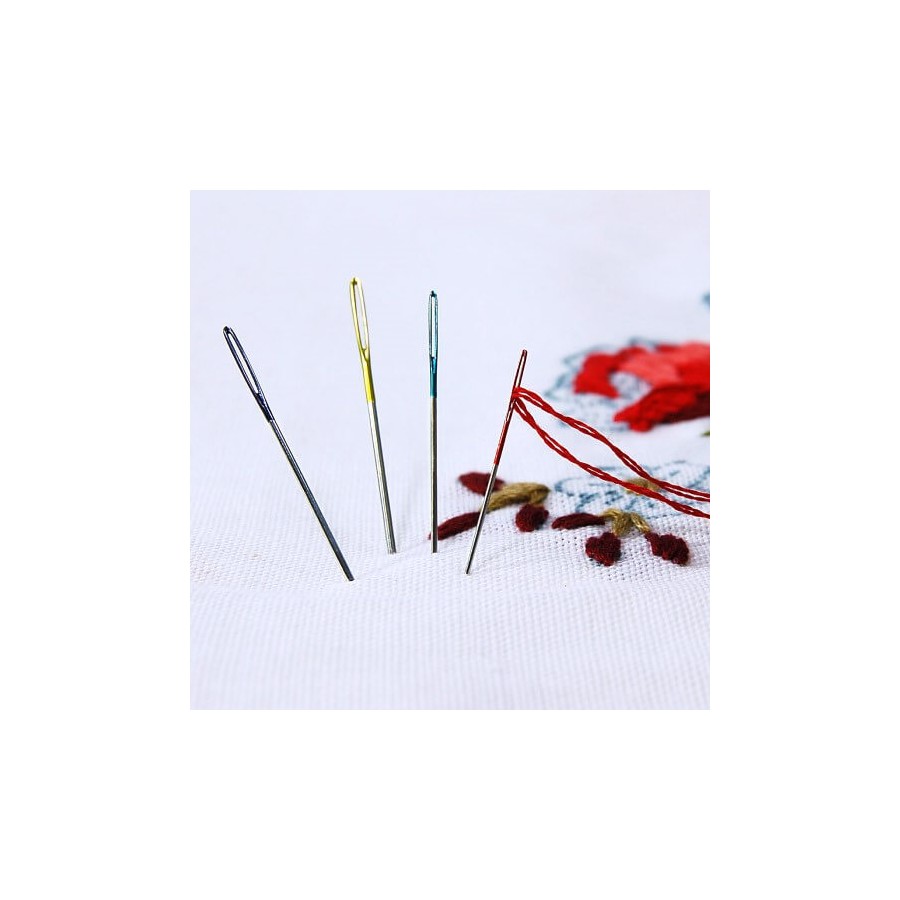 Agujas para bordar, con punta y ojo de color para identificar fácilmente el número y facilitar el enhebrado.