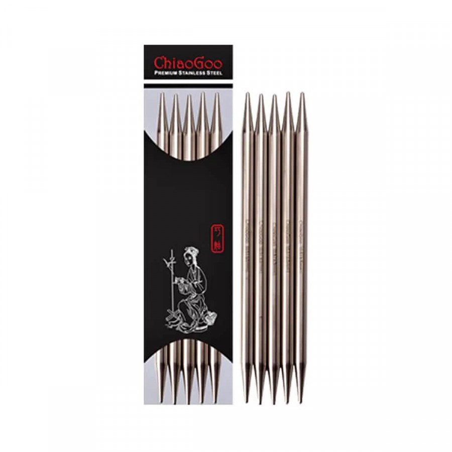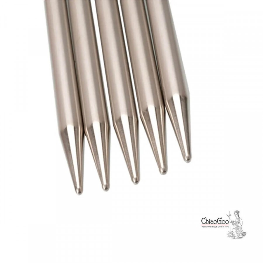 Estas agujas de doble punta ChiaoGoo están fabricadas en acero inoxidable, un material muy resistente y duradero, ligero y totalmente reciclable.