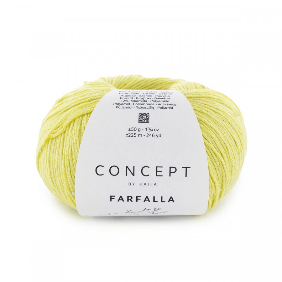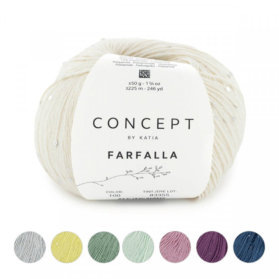 Aporta un toque chic a tus prendas con estos ovillos de Concept Farfalla, un hilo de algodón con micro lentejuelas que iluminan sutilmente cada proyecto. Muy suave y versátil, es ideal para tejer a dos agujas o a ganchillo piezas elegantes de primavera/verano.