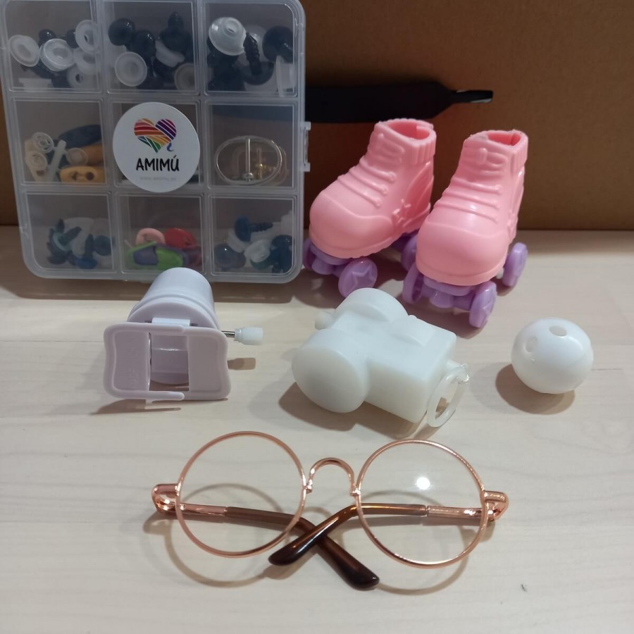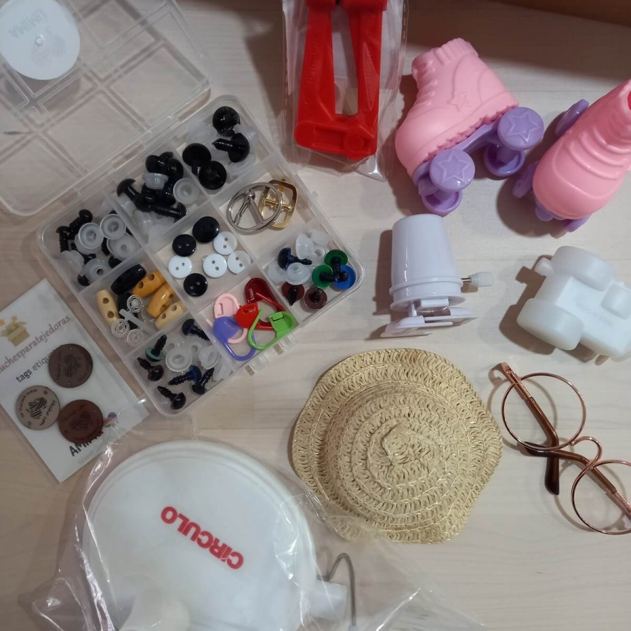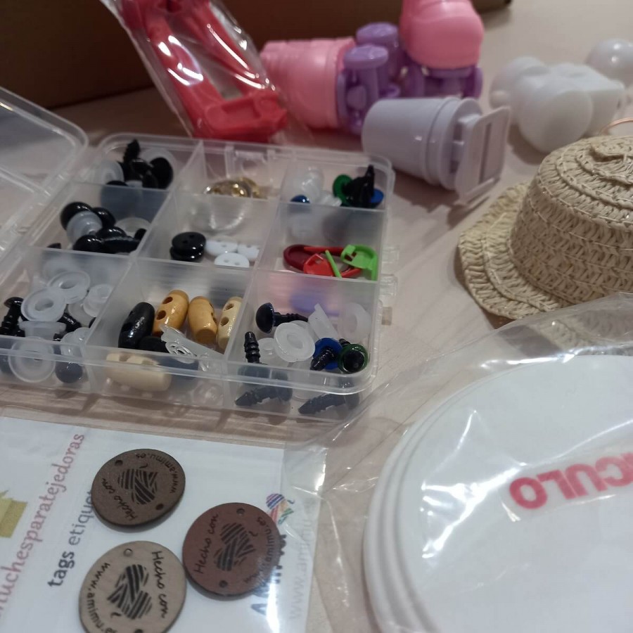 Este maletín incluye 20 accesorios diferentes para crear amigurumis: ojos de diferentes tamaños y colores, botones, sonajeros, gafas... ¡Descubre todo su contenido!