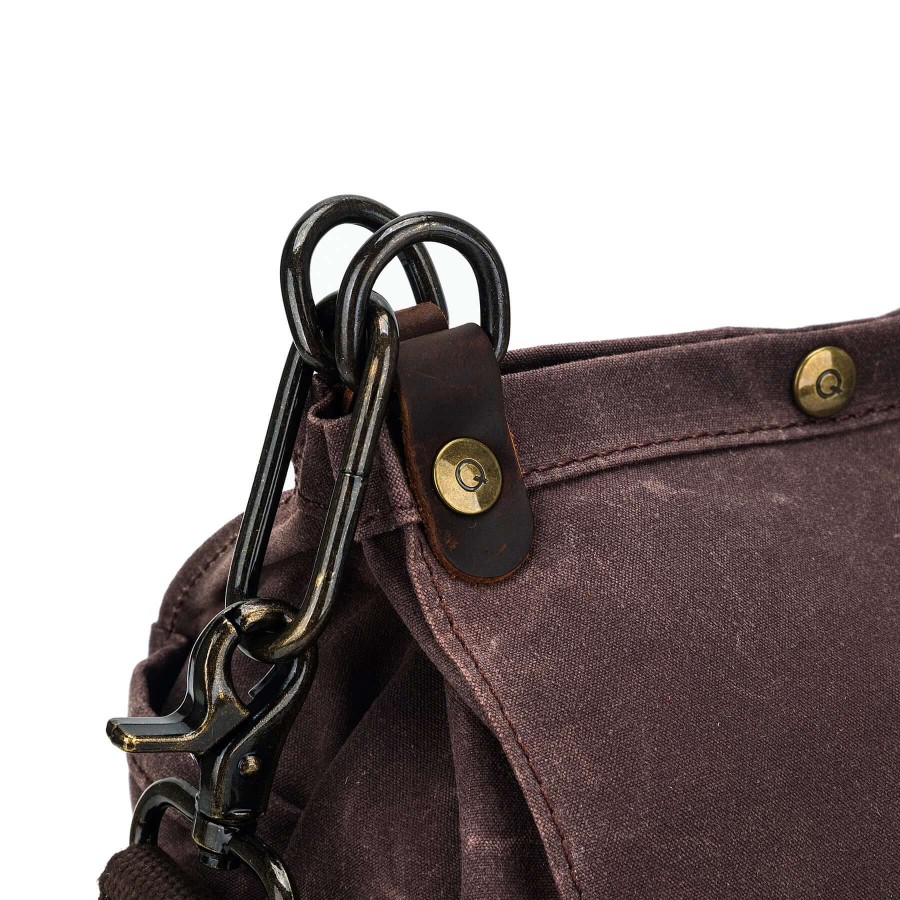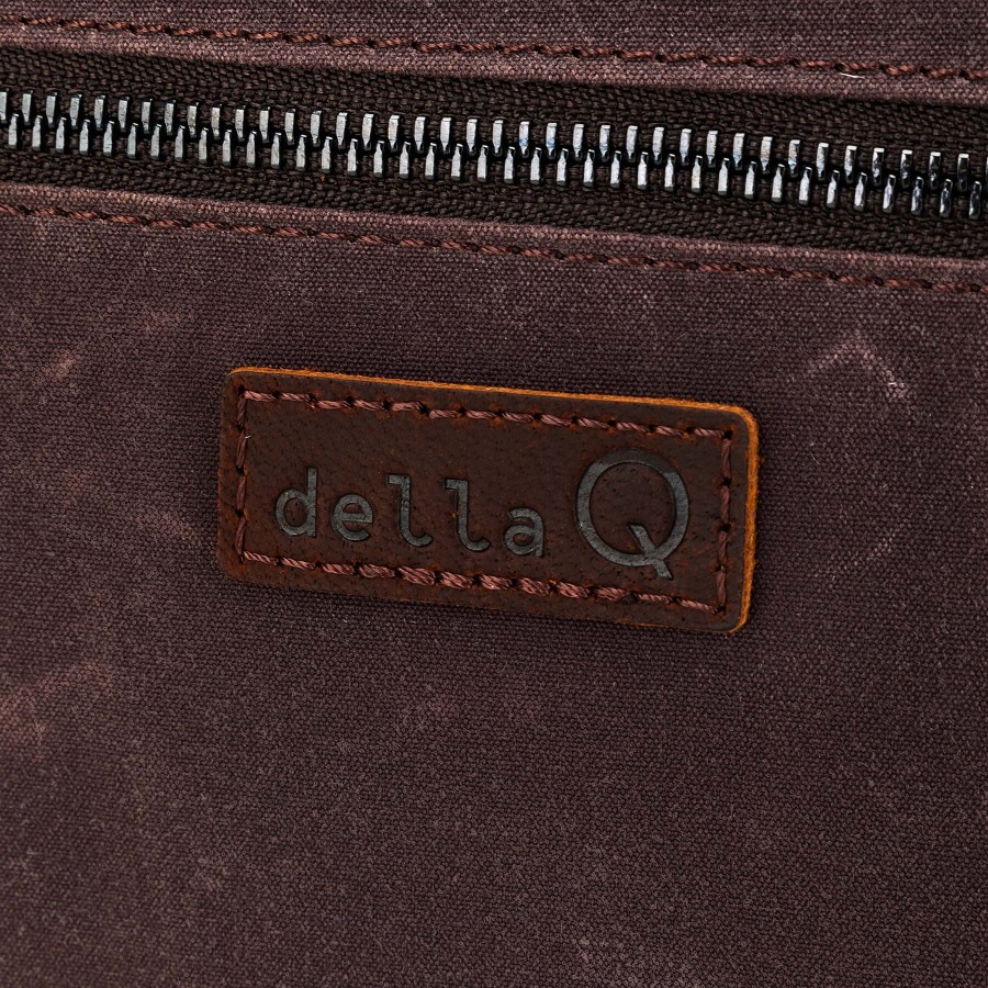 Lleva tus materiales de tejido con estilo con esta mochila 3 en 1 de Della Q. Con un precioso estilo vintage, está hecha a mano en resistente lona encerada con detalles de piel auténtica. Puedes usarla de varias maneras: como bolsa para tejer, bolsa para proyectos Oh Snap y bolso de mano.