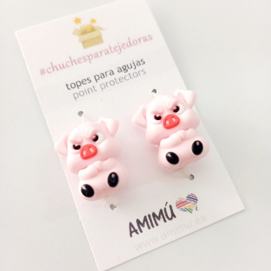 Juego de dos protectores para puntas de agujas de tejer.