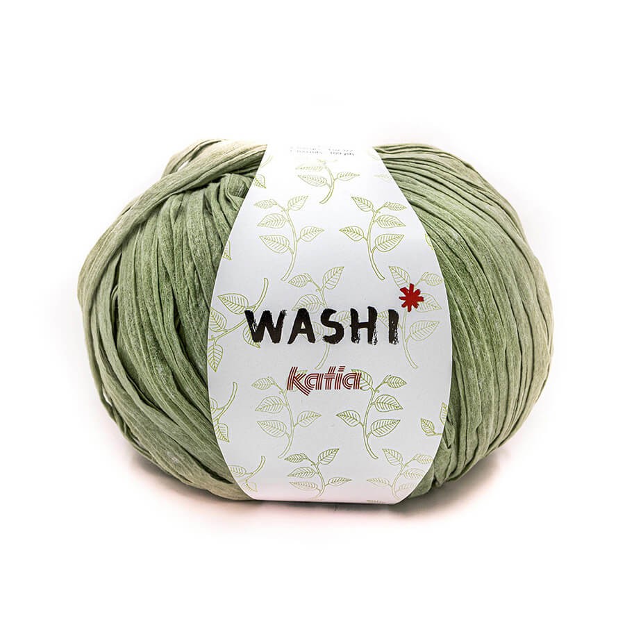 Washi es una cinta suave de poliéster, fácil y rápida de tejer a ganchillo y punto. Un sustituto perfecto del pesado trapillo para crear accesorios ligeros con agujas de punto o ganchillo grandes.