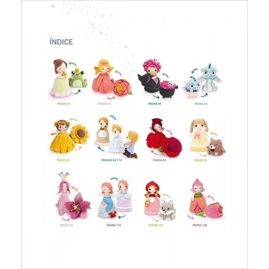 Con este libro se pueden tejer a ganchillo las maravillosas hadas de las flores, terroríficas brujas y tiernos dragones, además de los clásicos personajes de cuentos como la Cenicienta, la Sirenita, Ricitos de oro o Caperucita roja.