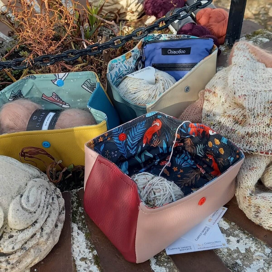 El cuenco lanero portátil es toda una revolución tejeril: podrás utilizarlo para guardar tus accesorios de punto y como cuenco lanero portátil.