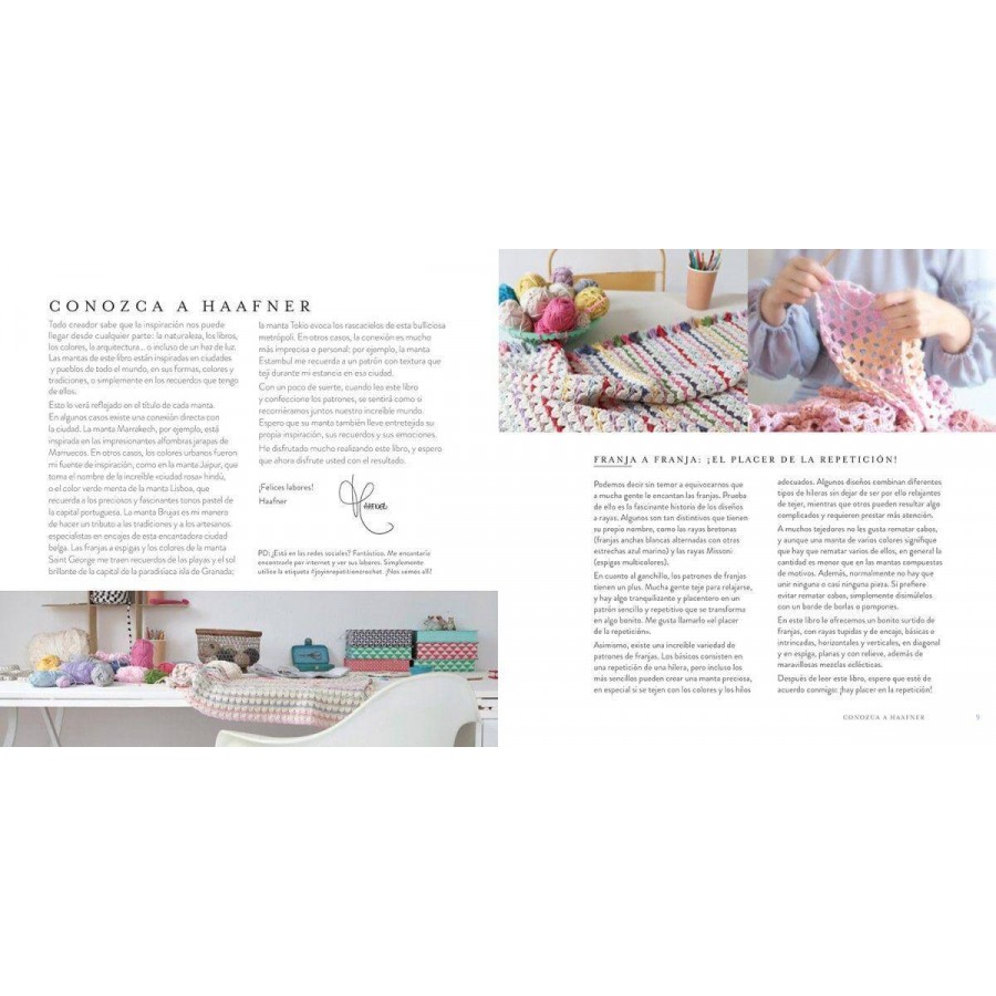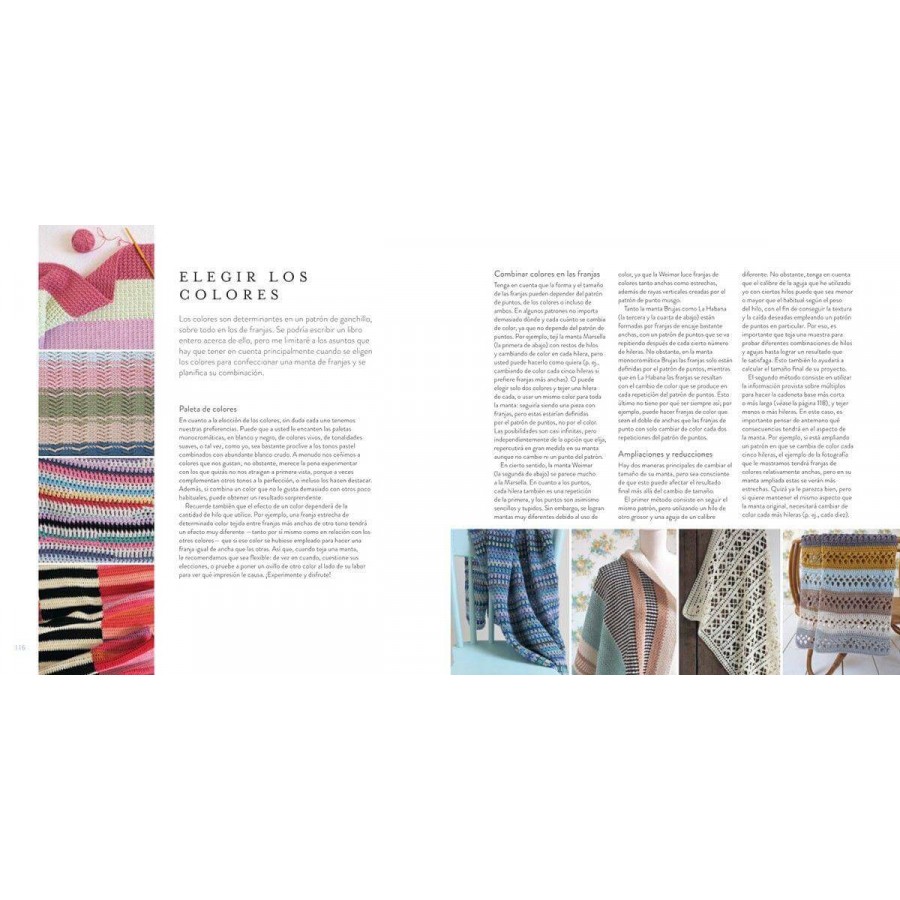 Este libro es en un viaje por el mundo de las franjas hechas a ganchillo. El proceso de tejer ayuda a relajarse, los patrones se trabajan a buen ritmo y hay que rematar pocos cabos.