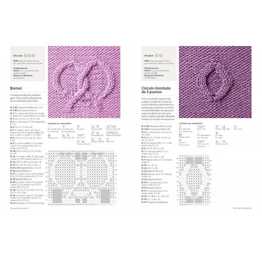 Cada punto va acompañado de un diagrama con su correspondiente patrón escrito, además de fotos en alta definición, la indicación del nivel de dificultad, ideas de combinaciones y un práctico cálculo de equivalencia a punto liso para que pueda incorporar fácilmente las trenzas a sus proyectos.