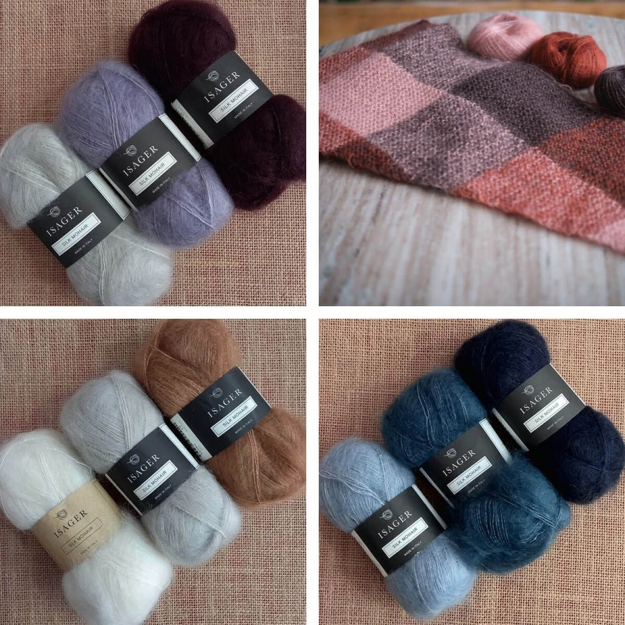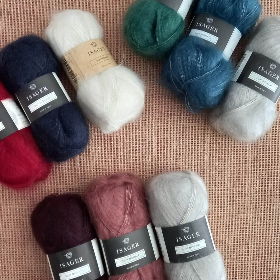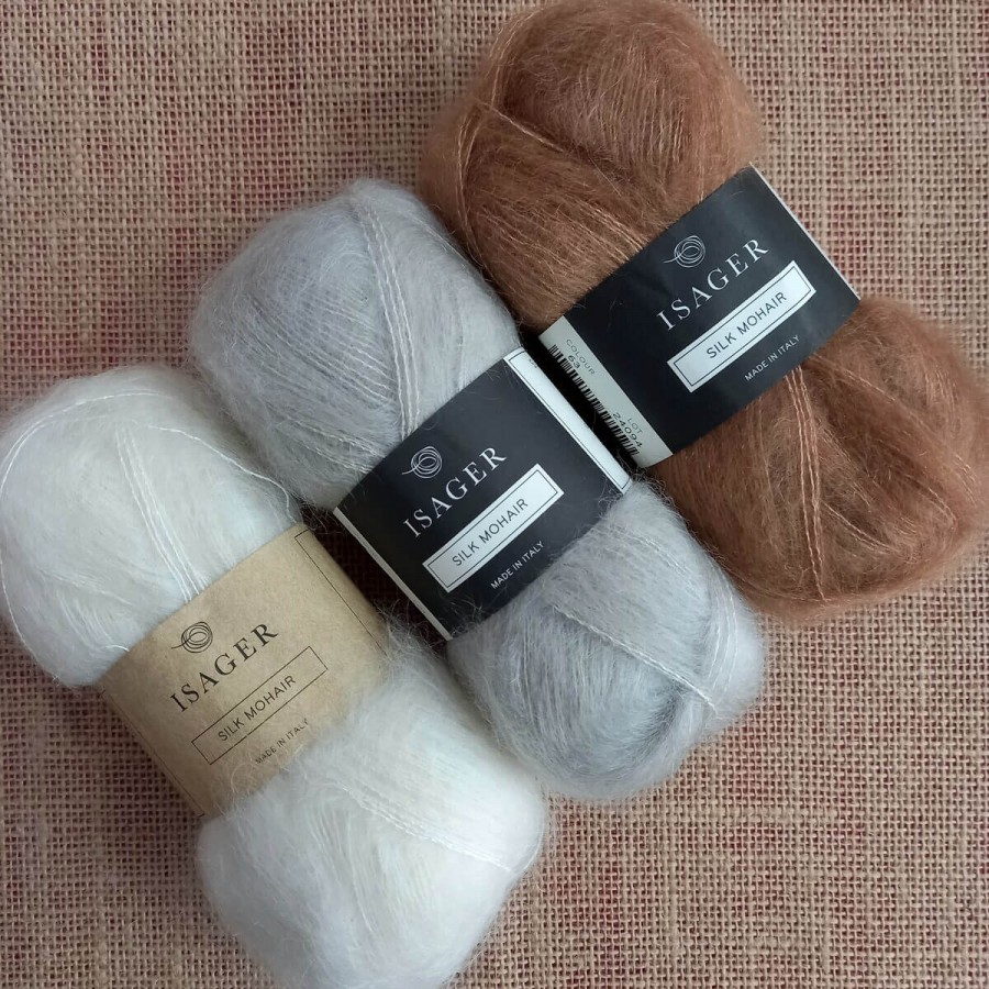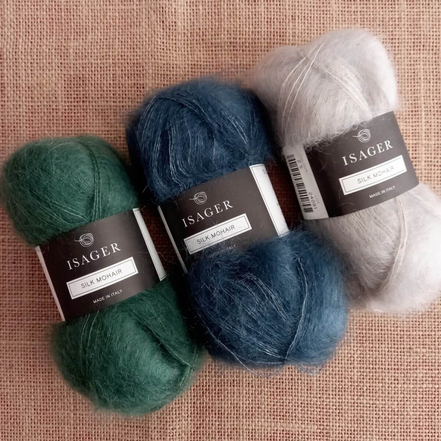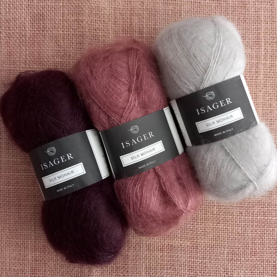 El kit incluye 2 ovillos de Silk Mohair de Isager de cada color.