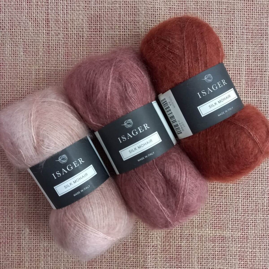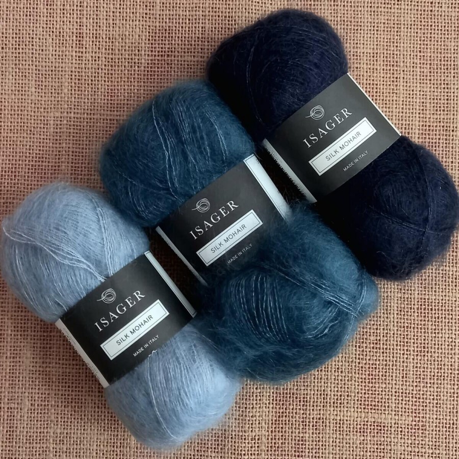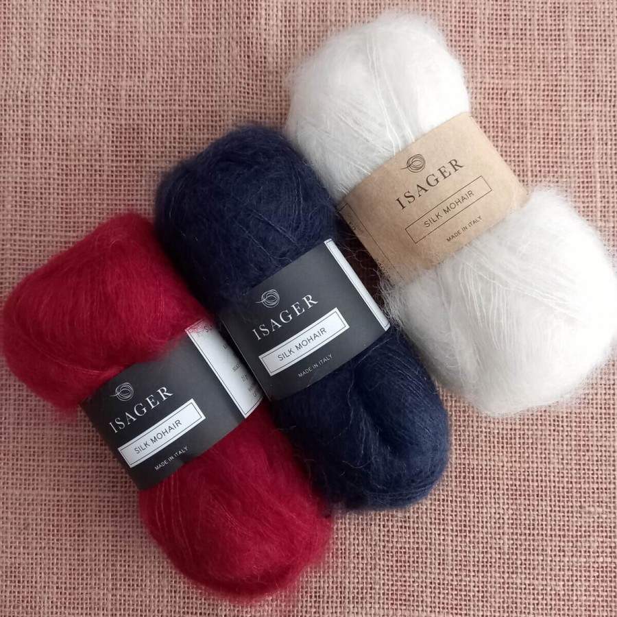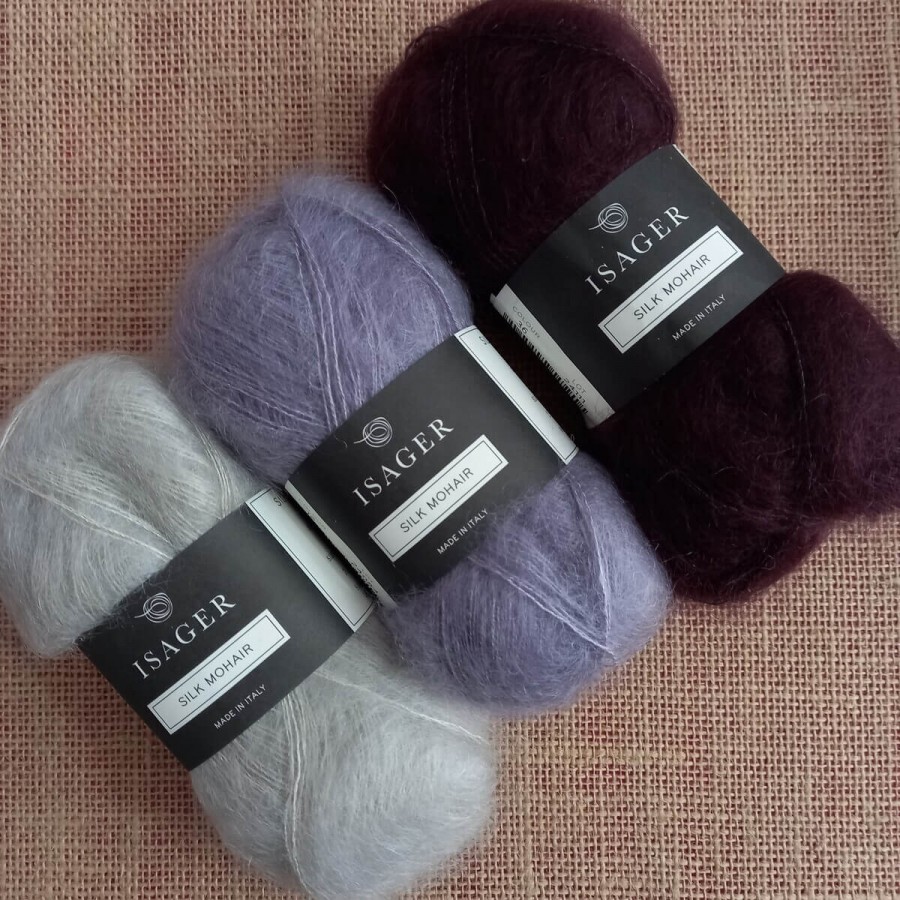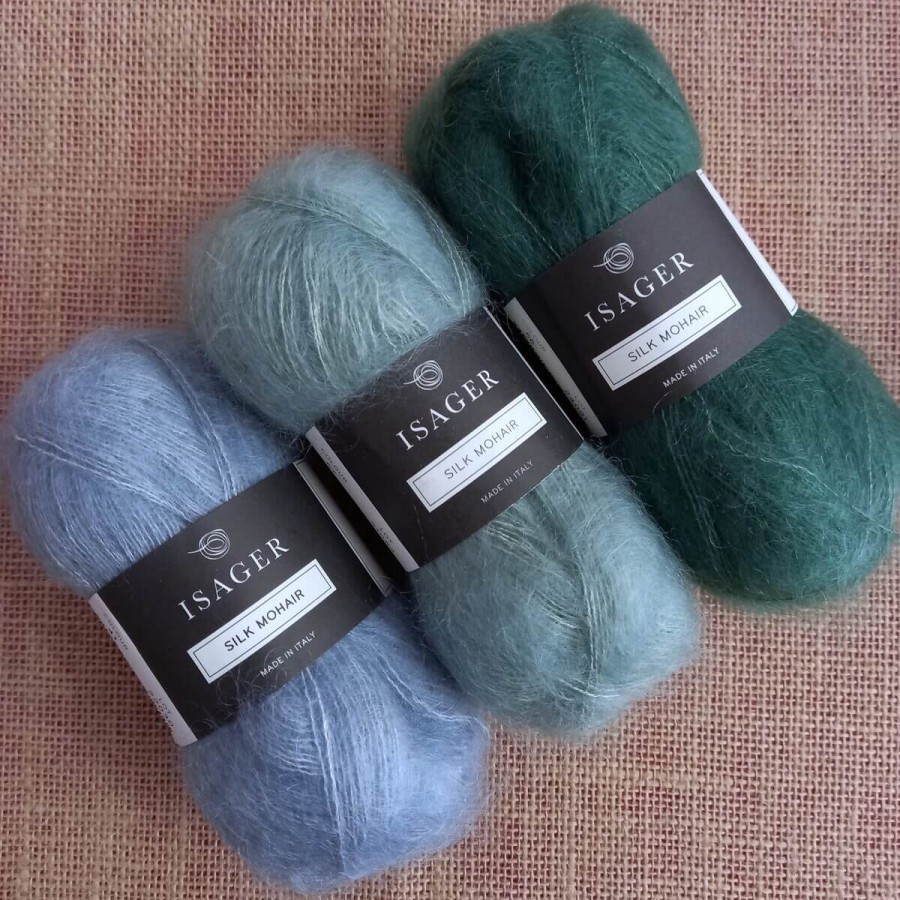 El kit incluye 2 ovillos de Silk Mohair de Isager de cada color.