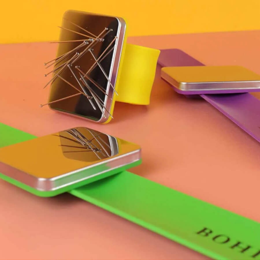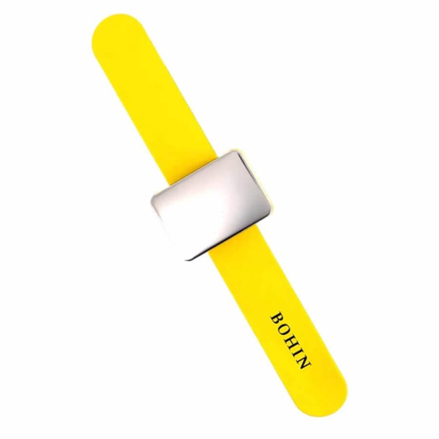 La pulsera magnética para alfileres y marcadores de punto es un accesorio de silicona con un imán de acero inoxidable. Este práctico accesorio es cómodo de llevar en la muñeca y te permite tener siempre tus marcadores a mano.