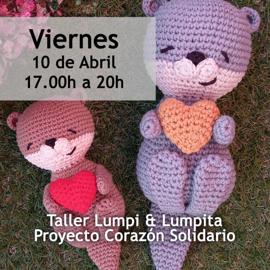 El Viernes 10 de Abril nos reuniremos para crear amigurumis para el proyecto Corazón Solidario* ¡Tejeremos a Lumpi y Lumpita!