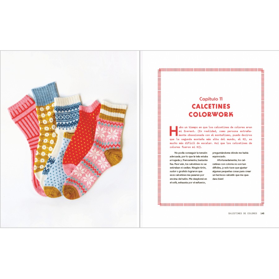 La diseñadora Summer Lee comparte en este libro sus secretos de tejido para crear calcetines de todas las formas y tallas con zigzags, rayas y una paleta de colores alegres casi neón.