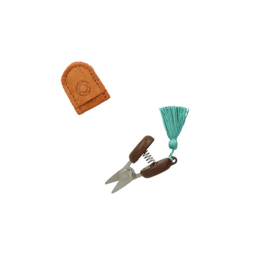 Cada par de mini tijeras Seki viene con una pequeña funda protectora de cuero, lo que las convierte en las compañeras de viaje ideales. ¡Una borla hecha a mano con un brillo sedoso le dan el toque final!